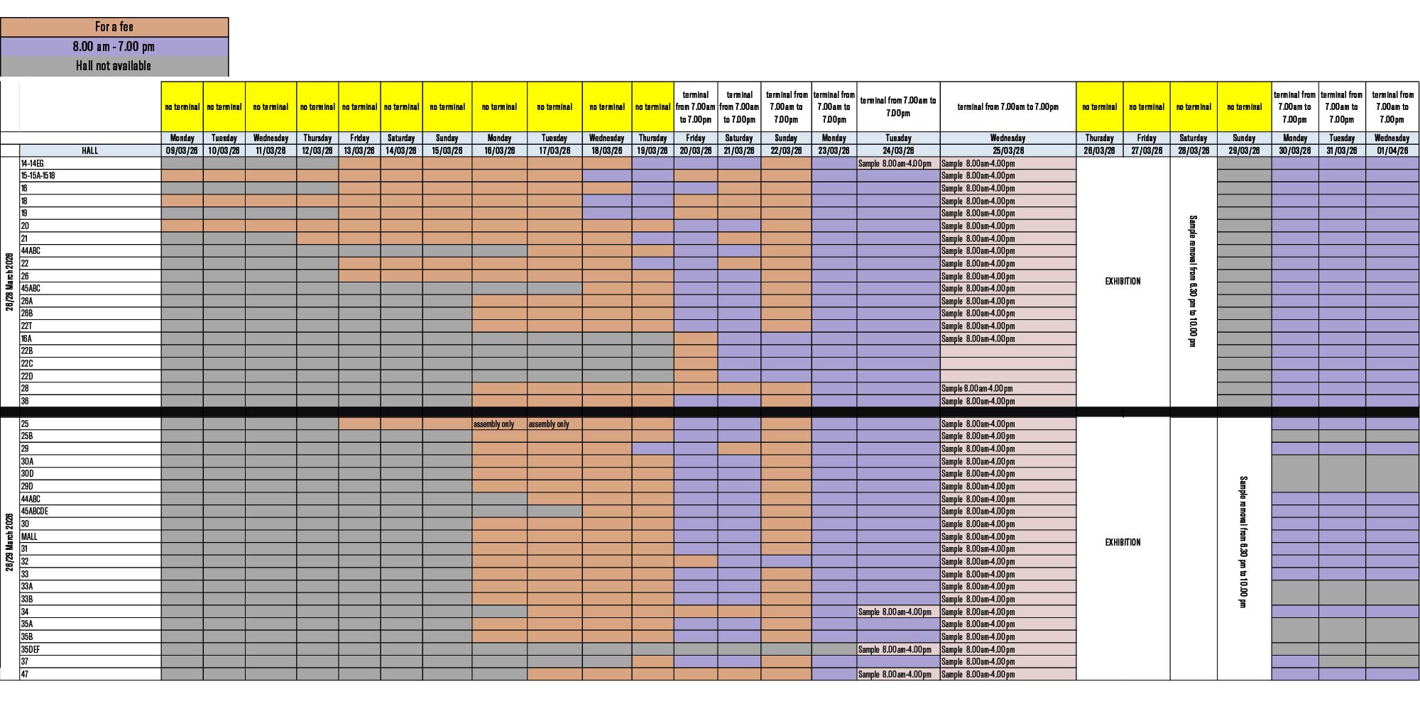 For dismantling days, use of the Terminal area will be required on 30.03, 31.03 and 01.04, from 08.00 to 19.00.
