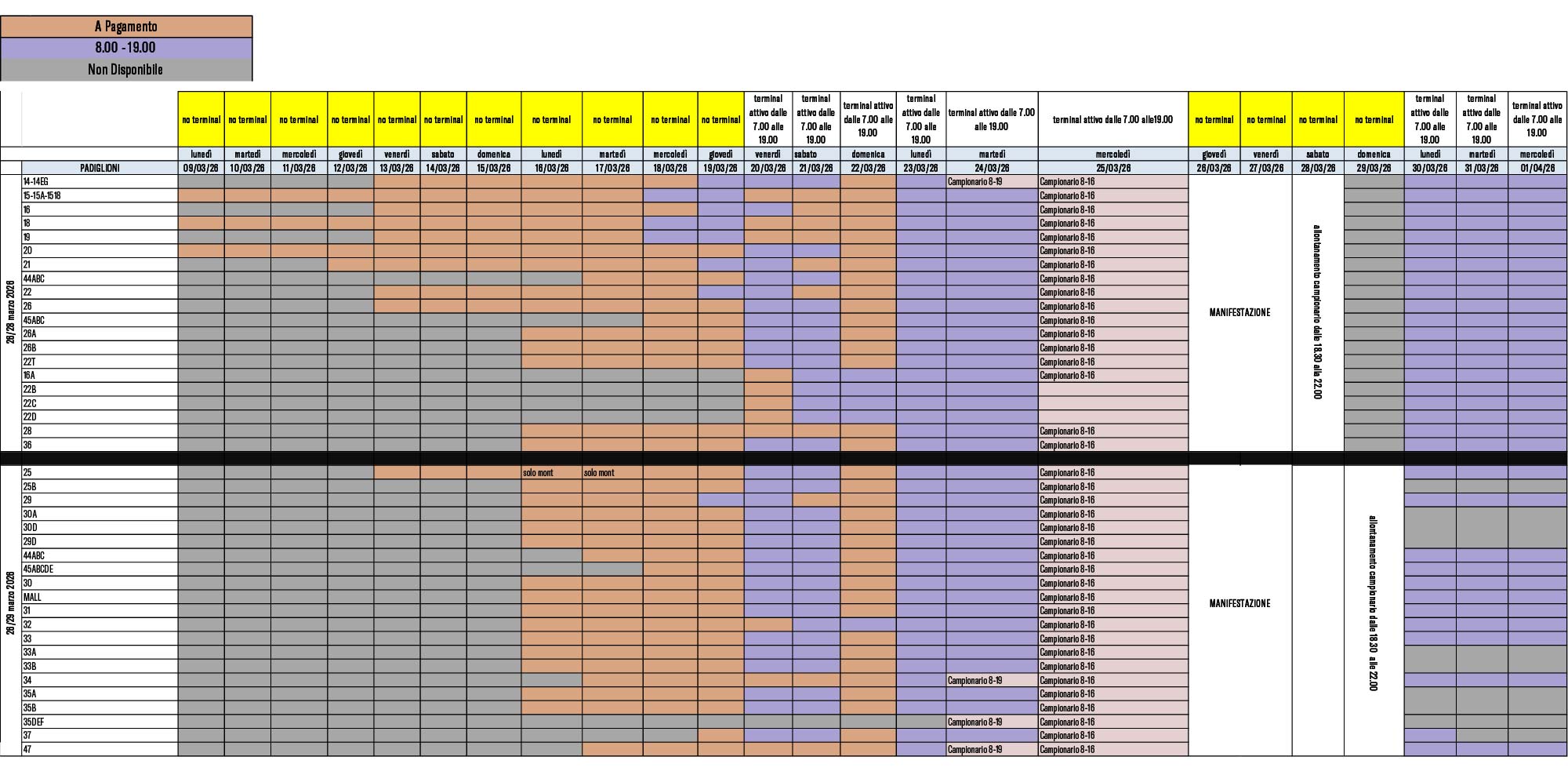 L'area terminal sarà attiva dal 20.03 all' 1.04 per il periodo di allestimento, dalle ore 08.00 alle ore 19.00.